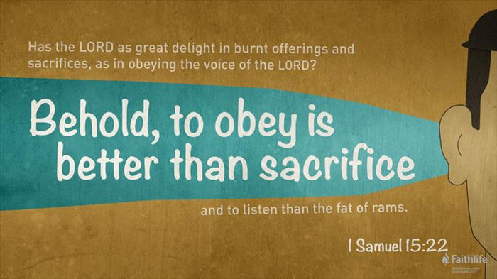 今日经文:撒母耳到了扫罗那里,扫罗对他说,“愿耶和华赐福与你。耶和华的命令我已遵守了。”撒母耳说,“我耳中听见有羊叫牛鸣,是从那里来的呢?”扫罗说,“这是百姓从亚玛力人那里带来的。因为他们爱惜上好的牛羊要献与耶和华你的神,其余的我们都灭尽了。”撒母耳对扫罗说,“你住口罢,等我将耶和华昨夜向我说的话告诉你。”扫罗说,“请讲。”撒母耳对扫罗说,“从前你虽然以自己为小,岂不是被立为以色列支派的元首么?耶和华膏你作以色列的王;耶和华差遣你,吩咐你说,你去击打那些犯罪的亚玛力人,将他们灭绝净尽。你为何没有听从耶和华的命令,急忙掳掠财物,行耶和华眼中看为恶的事呢?”扫罗对撒母耳说,“我实在听从了耶和华的命令,行了耶和华所差遣我行的路,擒了亚玛力王亚甲来,灭尽了亚玛力人。百姓却在所当灭的物中取了最好的牛羊,要在吉甲献与耶和华你的神。”撒母耳说,“耶和华喜悦燔祭和平安祭,岂如喜悦人听从他的话呢?听命胜于献祭,顺从胜于公羊的脂油。悖逆的罪与行邪术的罪相等,顽梗的罪与拜虚神和偶像的罪相同。你既厌弃耶和华的命令,耶和华也厌弃你作王。”扫罗对撒母耳说,“我有罪了;我因惧怕百姓,听从他们的话,就违背了耶和华的命令和你的言语。现在求你赦免我的罪,同我回去,我好敬拜耶和华。”撒母耳对扫罗说,“我不同你回去。因为你厌弃耶和华的命令,耶和华也厌弃你作以色列的王。”撒母耳转身要走,扫罗就扯住他外袍的衣襟,衣襟就撕断了。撒母耳对他说,“如此,今日耶和华使以色列国与你断绝,将这国赐与比你更好的人。以色列的大能者必不至说谎,也不至后悔;因为祂迥非世人,决不后悔。”扫罗说,“我有罪了。虽然如此,求你在我百姓的长老和以色列人面前抬举我,同我回去,我好敬拜耶和华你的神。”(撒上十五13-30)