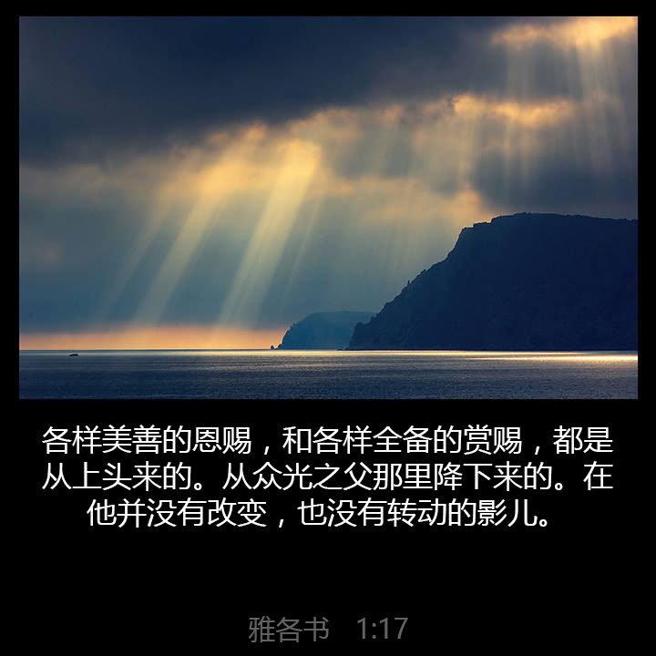 “16我亲爱的弟兄们,不要被迷惑。17各样美善的恩赐和各样全备的赏赐,都是从上头来的,从众光之父那里降下来的,在祂并没有改变,也没有转动的影儿。(“转动”和“影儿”都是天文学术语,分别指的是衰变的轨道和虚假的阴影)18祂按自己的旨意,用真道生了我们,叫我们在祂所造的万物中,好像初熟的果子。”