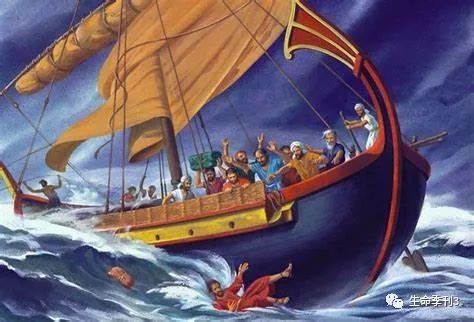 看见了么?平静的海面起了风波,船和船上的人遭了危险,就是因为有一个惹神震怒的约拿藏在船的底舱里面。不将约拿抛在海中,不但海浪不能平静,而且没有方法能逃避翻船的危险。虽然船上的人设法寻求出路,“竭力荡桨,要把船拢岸。”但他们所设的方法却是毫无功效。在惊涛骇浪中“竭力荡桨”与“将约拿抬起抛在海中”那一件事容易?任何人都能回答。不过他们不敢将约拿抛在海中,恐怕神向他们发怒。及至他们的方法完全失了效,眼看着就要同归于尽的时候,他们求告过耶和华以后,才“将约拿抬起抛在海中”。惹祸的约拿既不在船里,海中的风浪便平息,船也不再有倾覆的危险了。