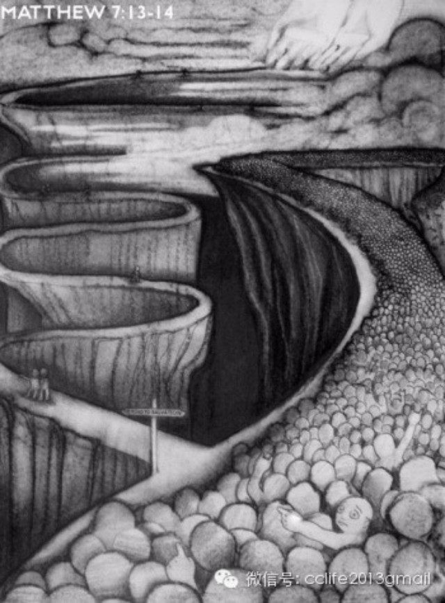 “你们要进窄门。因为引到灭亡,那门是宽的,路是大的,进去的人也多。引到永生,那门是窄的,路是小的,找着的人也少。”