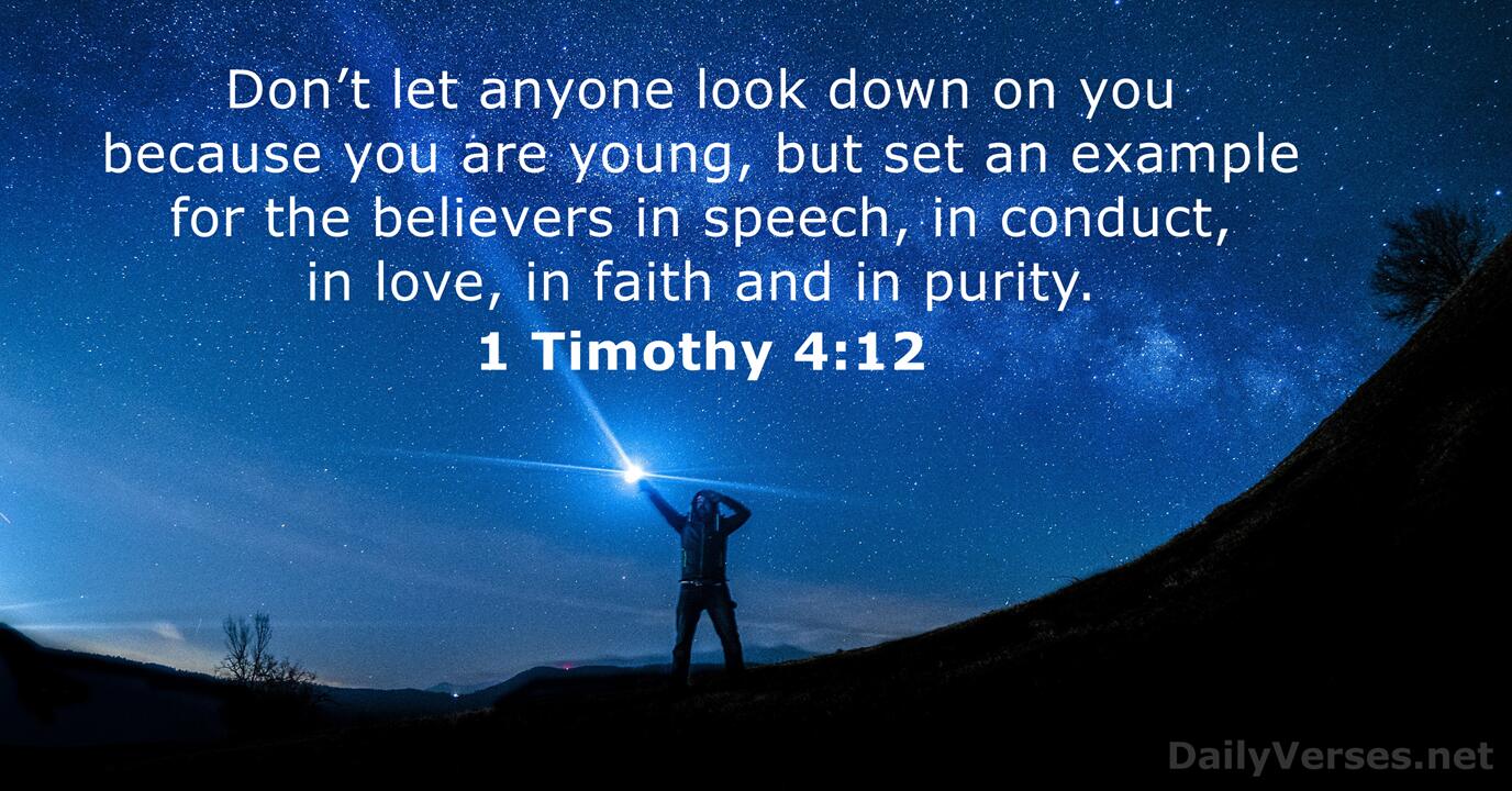 “不可叫人小看你年要在言,行心,信心,清洁上,都作信徒的榜样。”(提前四12