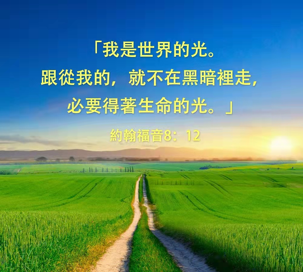 今日经文:“耶稣又对众人说,我是世界的光。跟从我的,就不在黑暗里走,必要得着生命的光。”(约8:12)