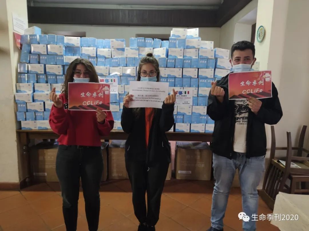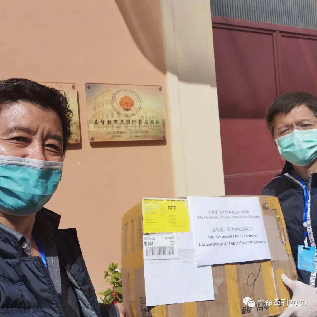 (下面三张图片为意大利华人教会收到了生命季刊捐赠的防护物资)