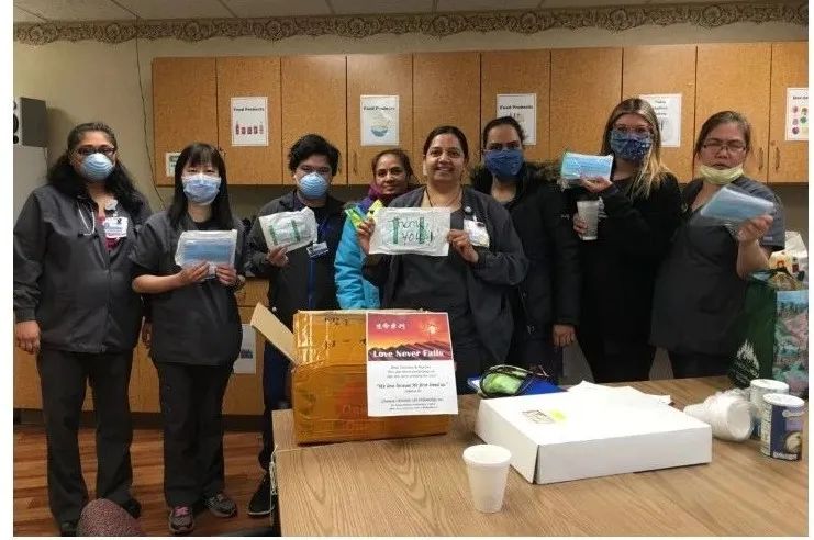 (芝加哥一家医院的医护人员接收中国基督徒捐赠的口罩)
