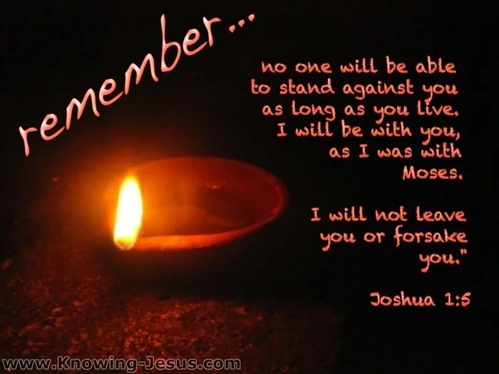 “你平生的日子,必无一人能在你面前站立得住。我怎样与摩西同在,也必照样与你同在。我必不撇下你,也不丢弃你。”(约书亚记1:5)