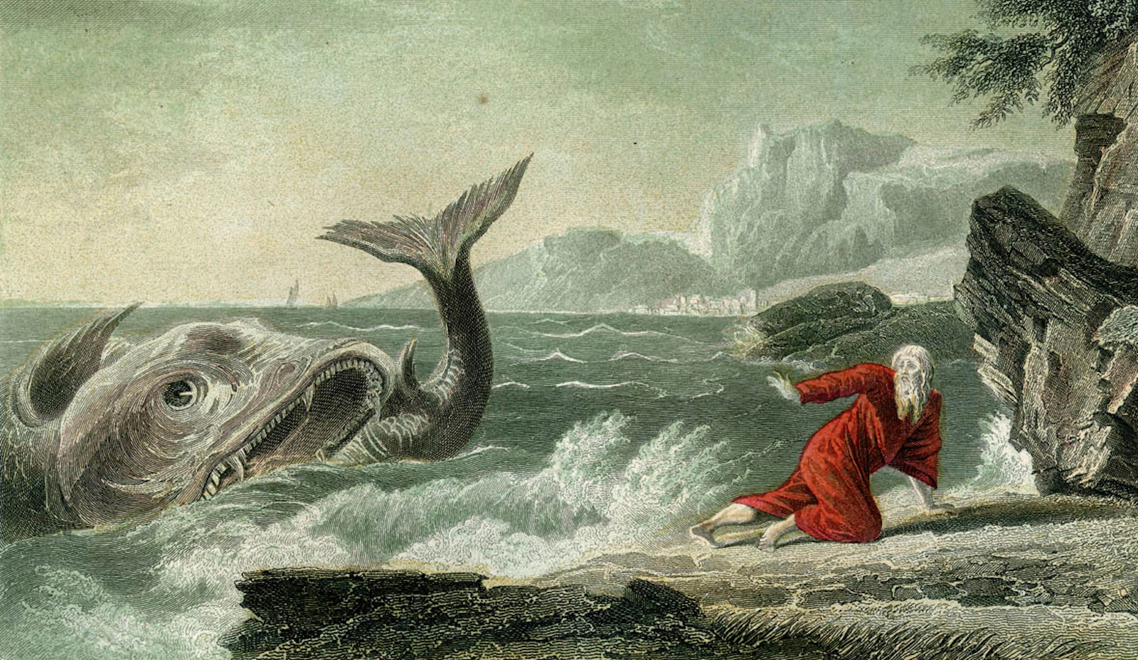 神对约拿的拯救,圣经只用一句话简单带过:“耶和华吩咐鱼,鱼就把约拿吐在旱地上。”