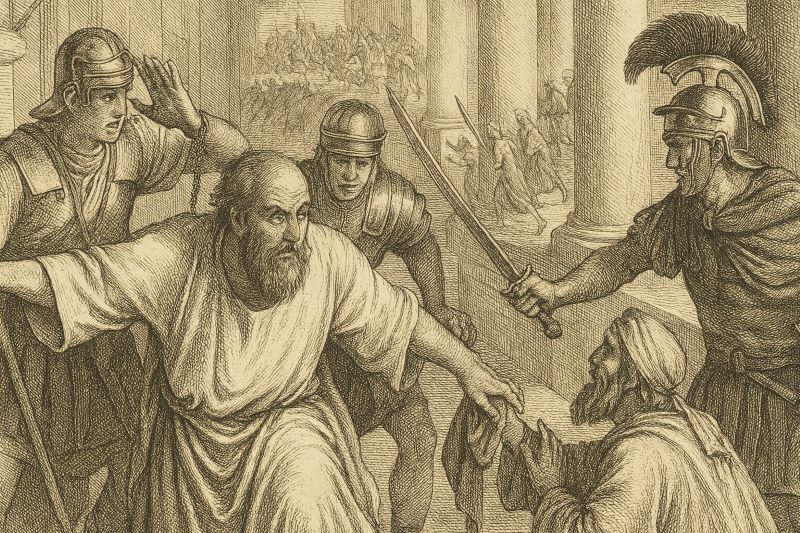 很显然,这群暴徒正在对保罗拳打脚踢,因为路加记载说,“他们见了千夫长和兵丁,就止住不打保罗。”(徒21:32)